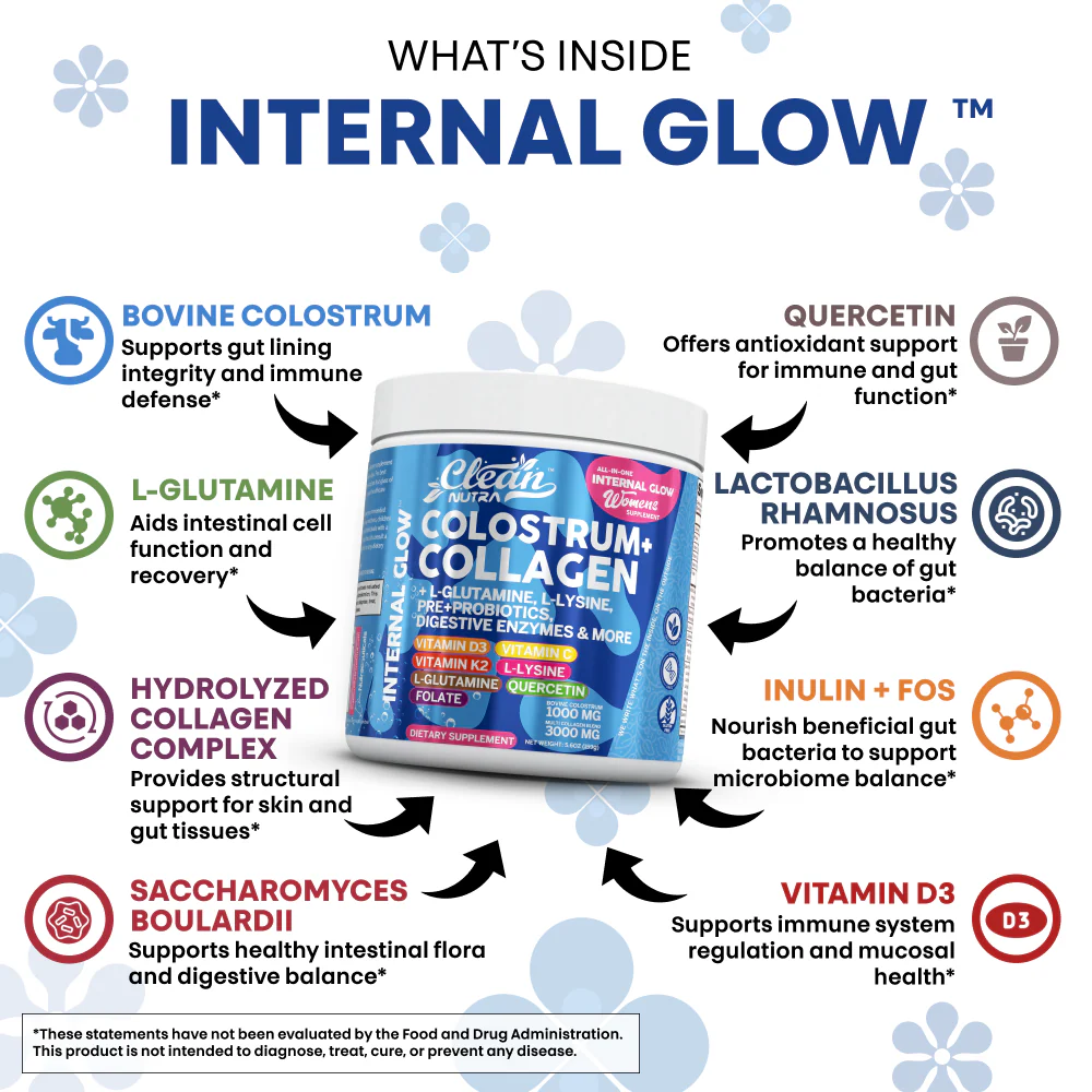 Support your body's natural beauty and wellness. Our premium formula combines bovine colostrum, collagen peptides, and targeted vitamins in one easy-to-mix, vanilla-flavored powder. Nourish your body from the inside out for beautiful skin, gut health, and overall vitality.